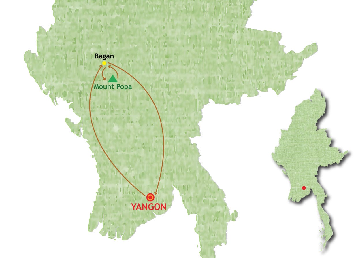 Yagon - Bago -Yangon - Bagan - Mount Popa - Bagan -Yangon - Departure
