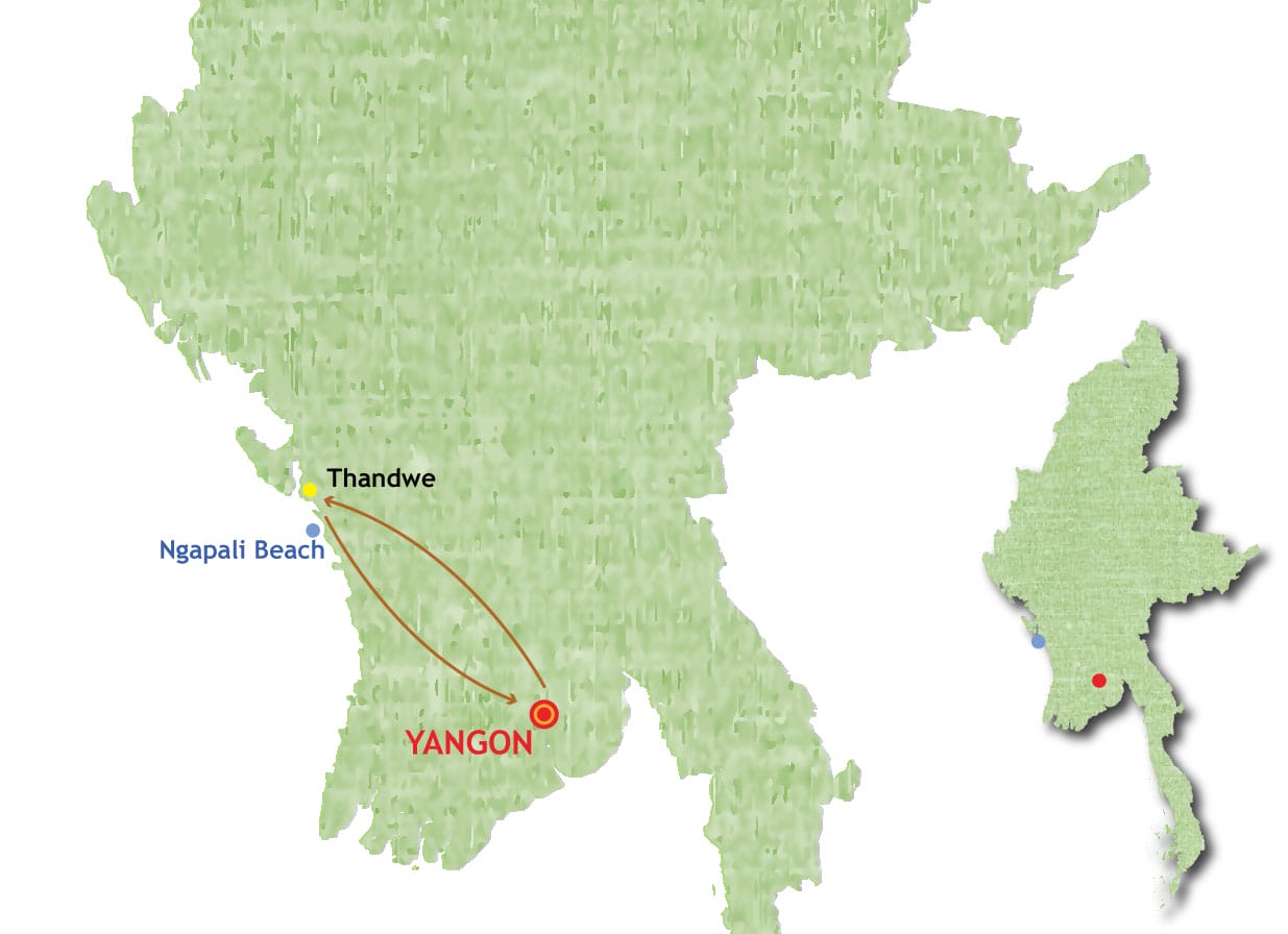 Yangon – Thandwe - Ngapali Beach - Thandwe - Yangon - Departure