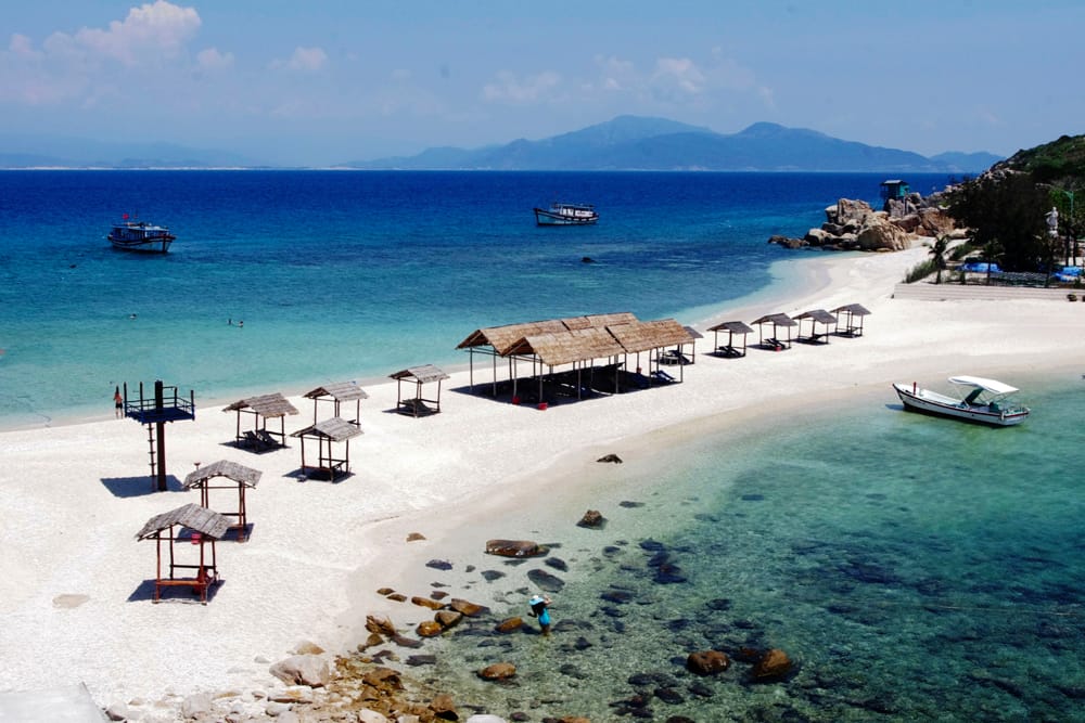It takes about an hour from the wharf of Cau Da to Hon Noi – the place of swallows in Nha Trang, Khanh Hoa. The significance of this island is the twin beach which cannot be found elsewhere in Vietnam. In particular, this beach offers two types of water – the cold and the warm on each side which give visitors a strong emotion.